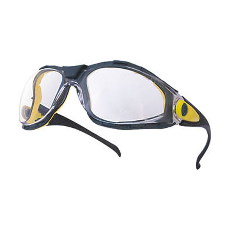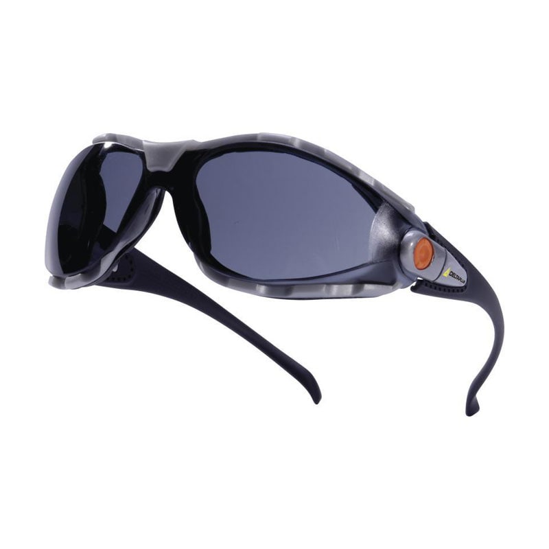 Clear & Smoke polycarbonate single-lens spectacles. Integrated nosepiece. Tilting nylon arms. Side protections. Removable foam for shock and dust protection. Anti-mist.Anti-scratch.