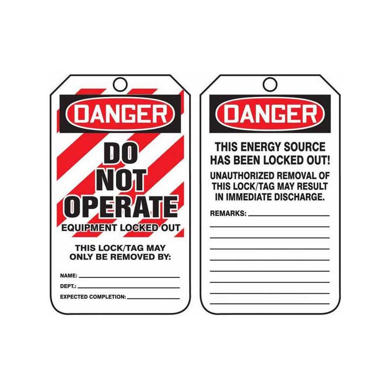 Tagout device: A prominent warning device, such as a tag and a means of attachment, that can be securely fastened to an energy-isolating device to indicate that the machines or equipment to which it is attached may not be operated until the tagout device is removed.
