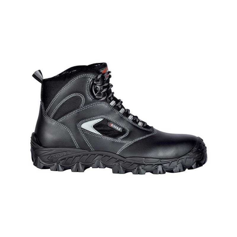 Black water repellent leather and breathable textile ankle boot, Sany-Dry lining, anti-shock, antistatic, slipping resistant, nonmetallic APT Plate midsole Zero Perforation.